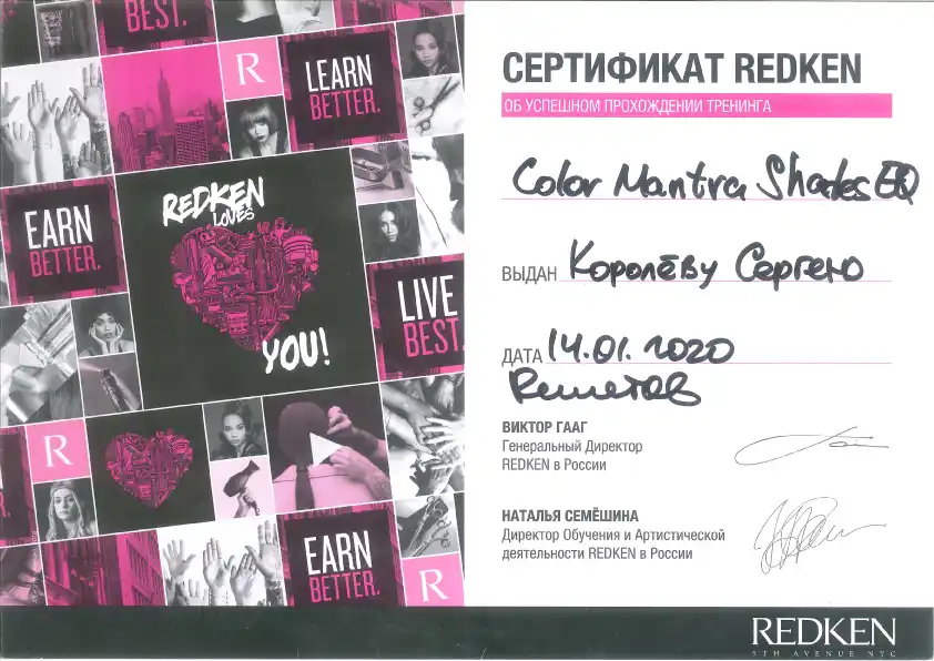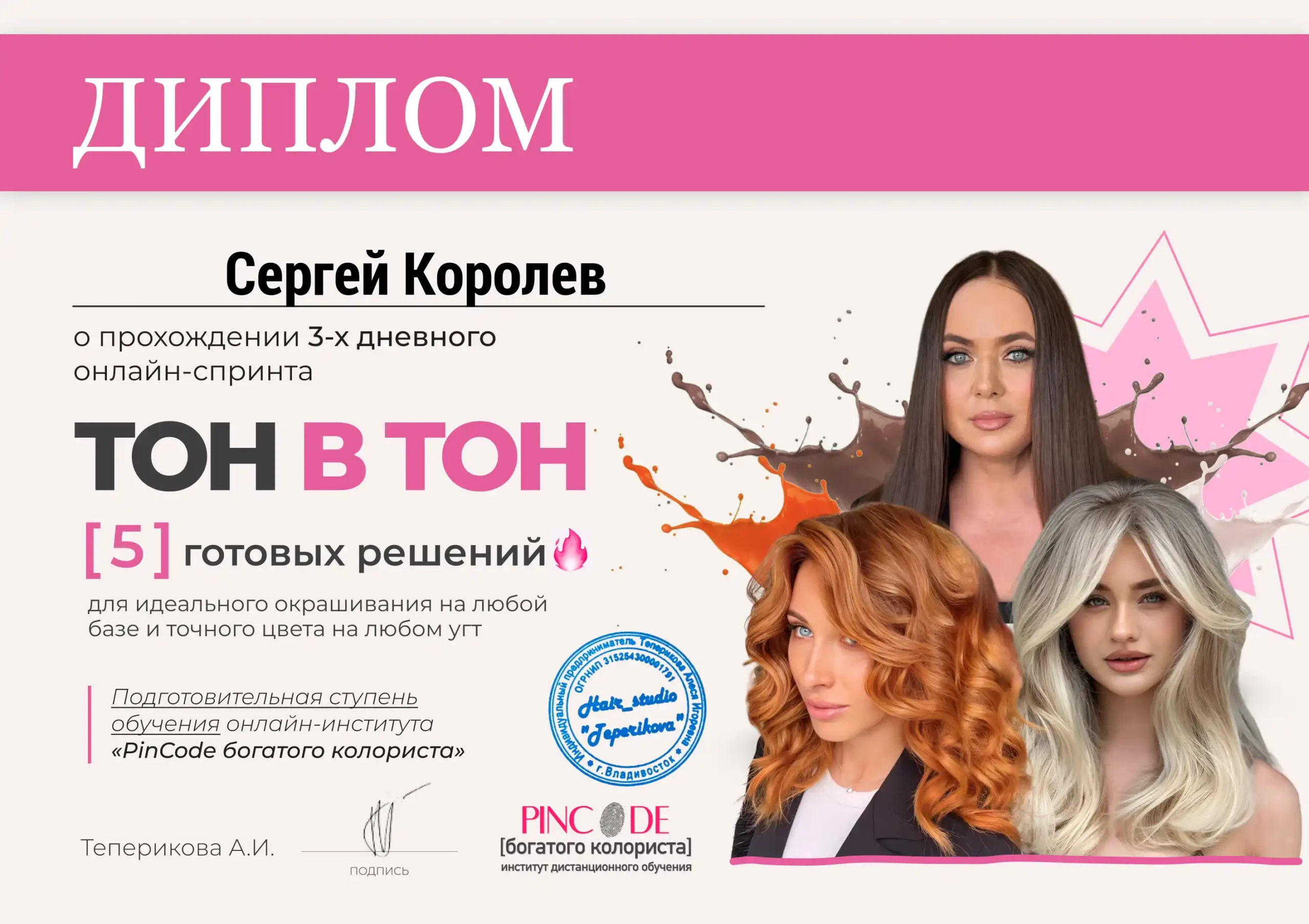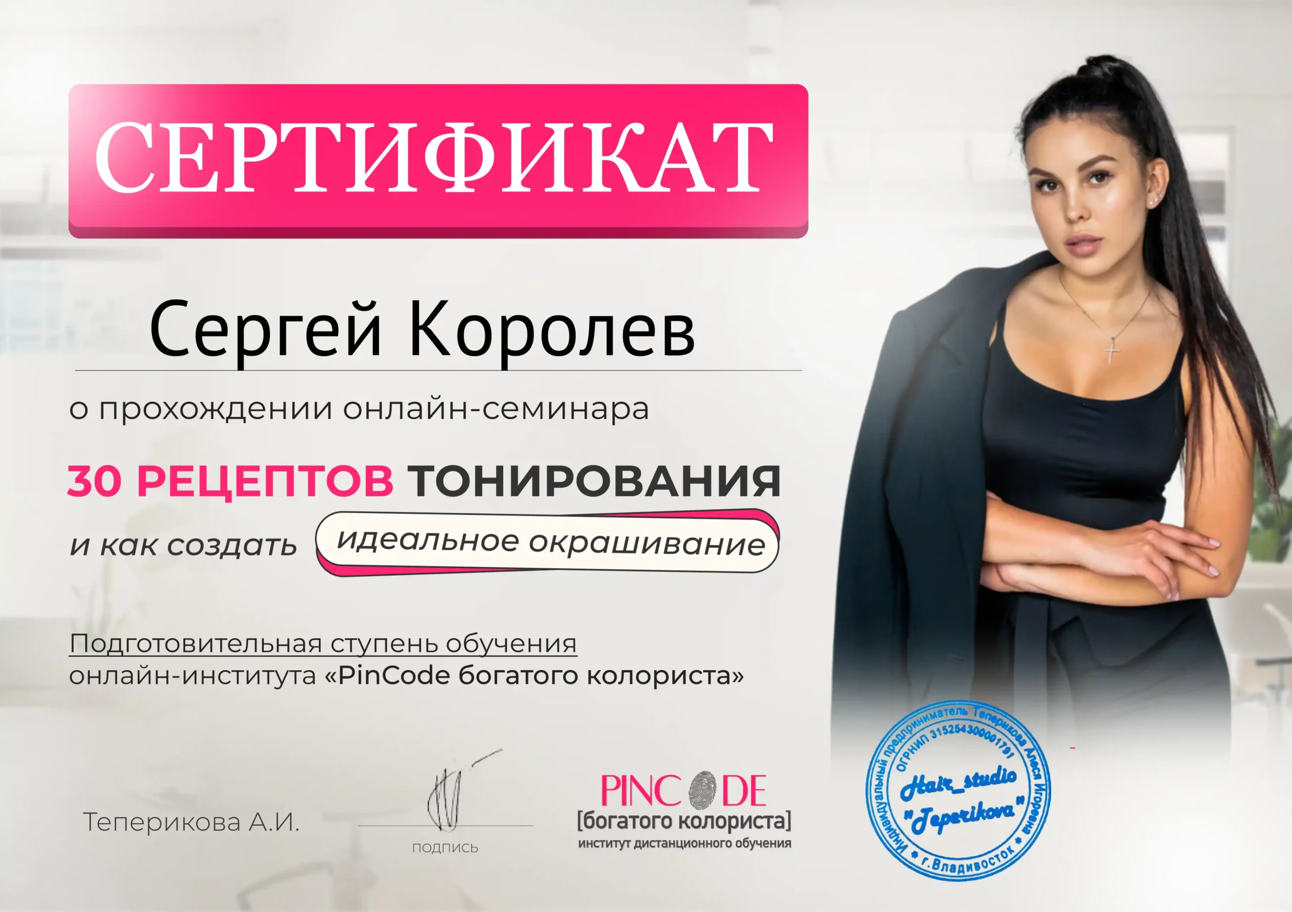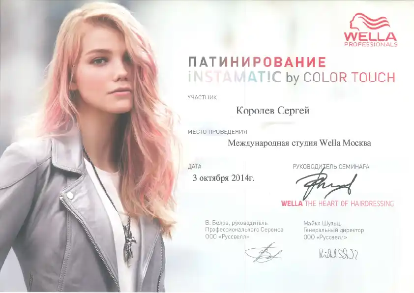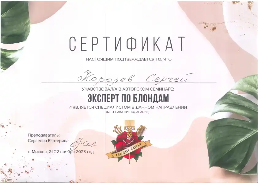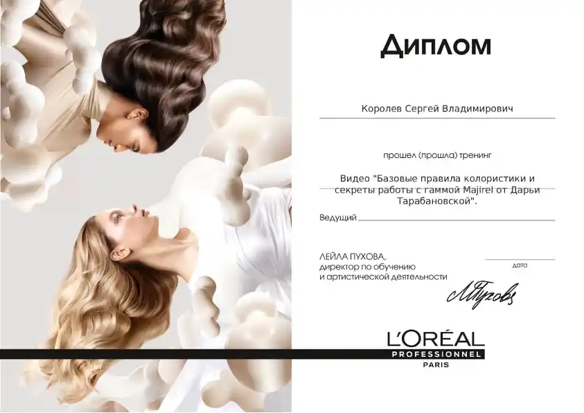 А также, прошёл обучение у ТОП-экспертов индустрии красоты России и целенаправленно учился у лучших стилистов-колористов России, чтобы перенять их опыт и авторские техники: