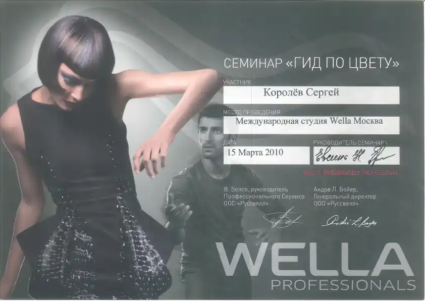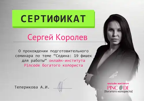 - Екатерина Сергеева — эксперт по сложному окрашиванию, автор методики работы с проблемными волосами. Обучался коррекции неудачных окрашиваний.